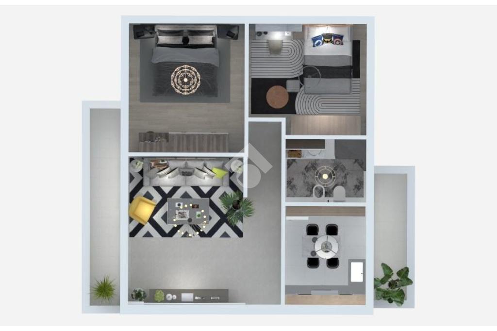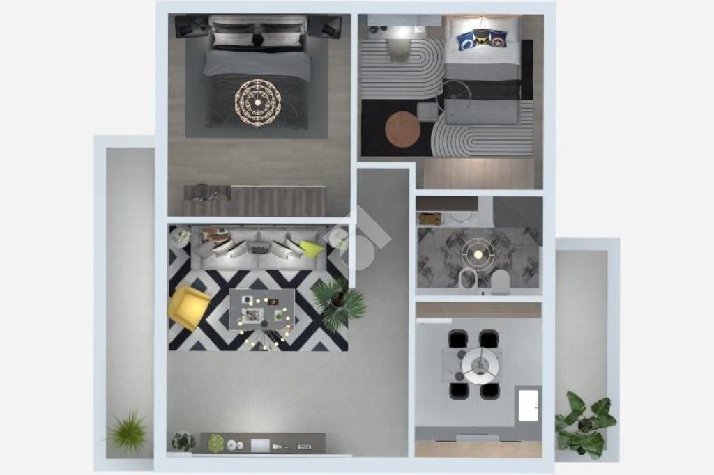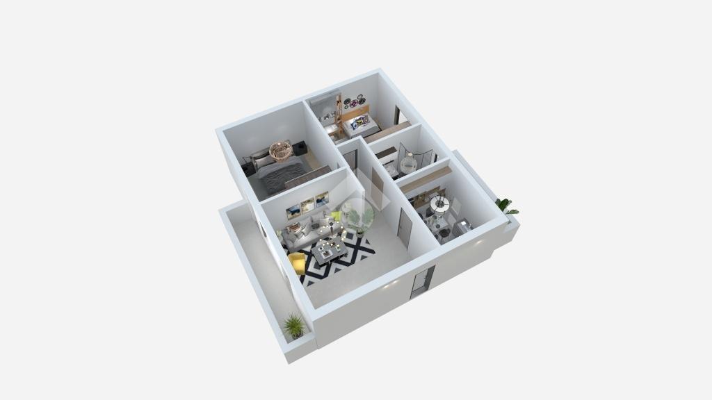 La zona notte comprende due camere accoglienti e un bagno ben organizzato, mentre la presenza di due balconi assicura luce naturale e spazi esterni da vivere.