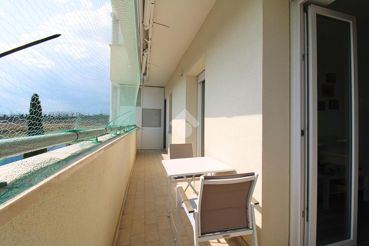 La zona giorno si apre su un balcone vivibile e comprende un soggiorno di generose dimensioni e una cucina openspace. La zona notte ospita due camere da letto, tra cui una matrimoniale ed una cameretta singola, oltre ad un bagno pratico e ben rifinito.
