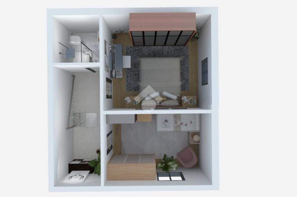 La casa è composta da tre locali principali, tra cui due camere da letto, una matrimoniale e una cameretta singola, pensate per garantire comfort e privacy. Due bagni, uno per ciascun piano, rendono la soluzione ancora più pratica e adatta alla quotidianità.